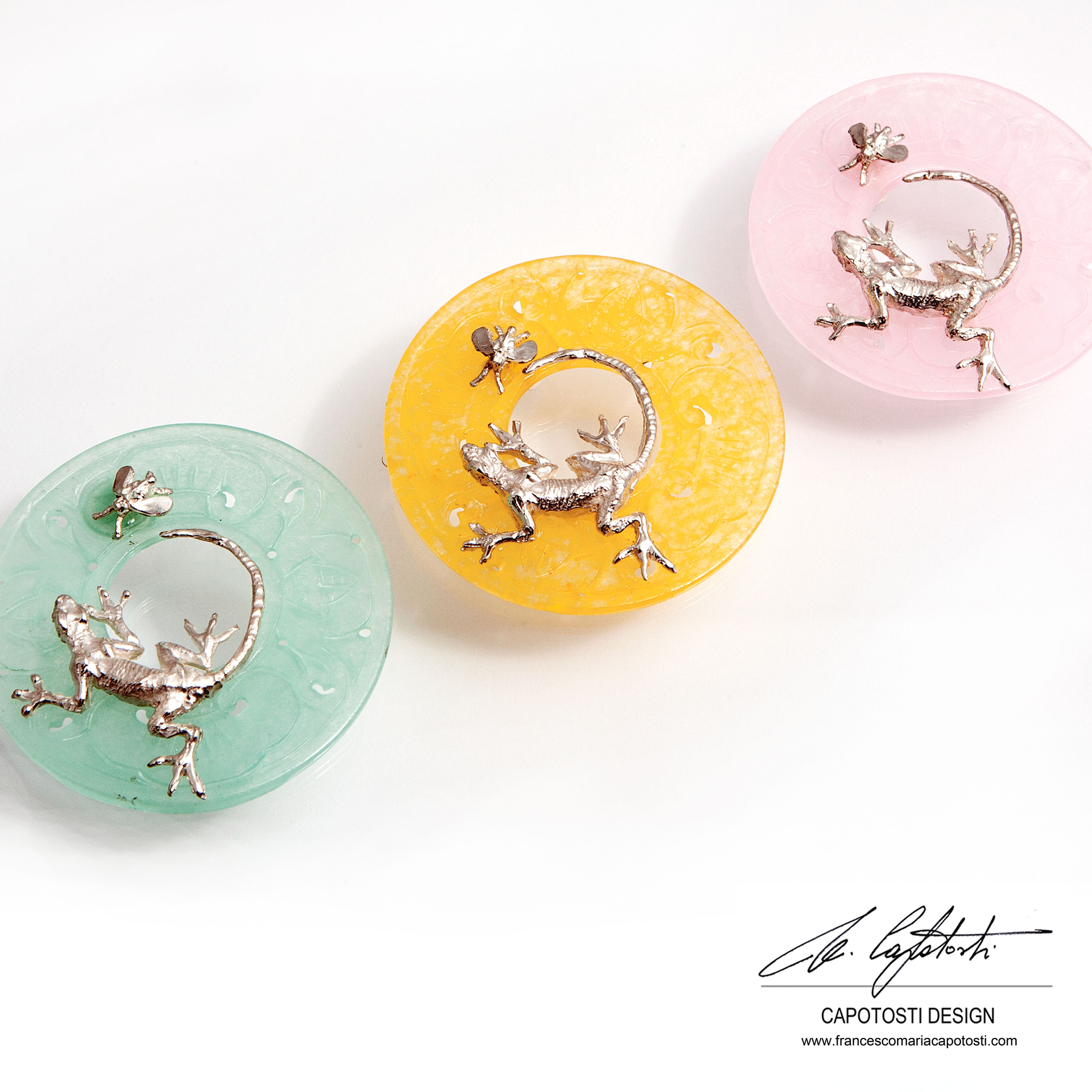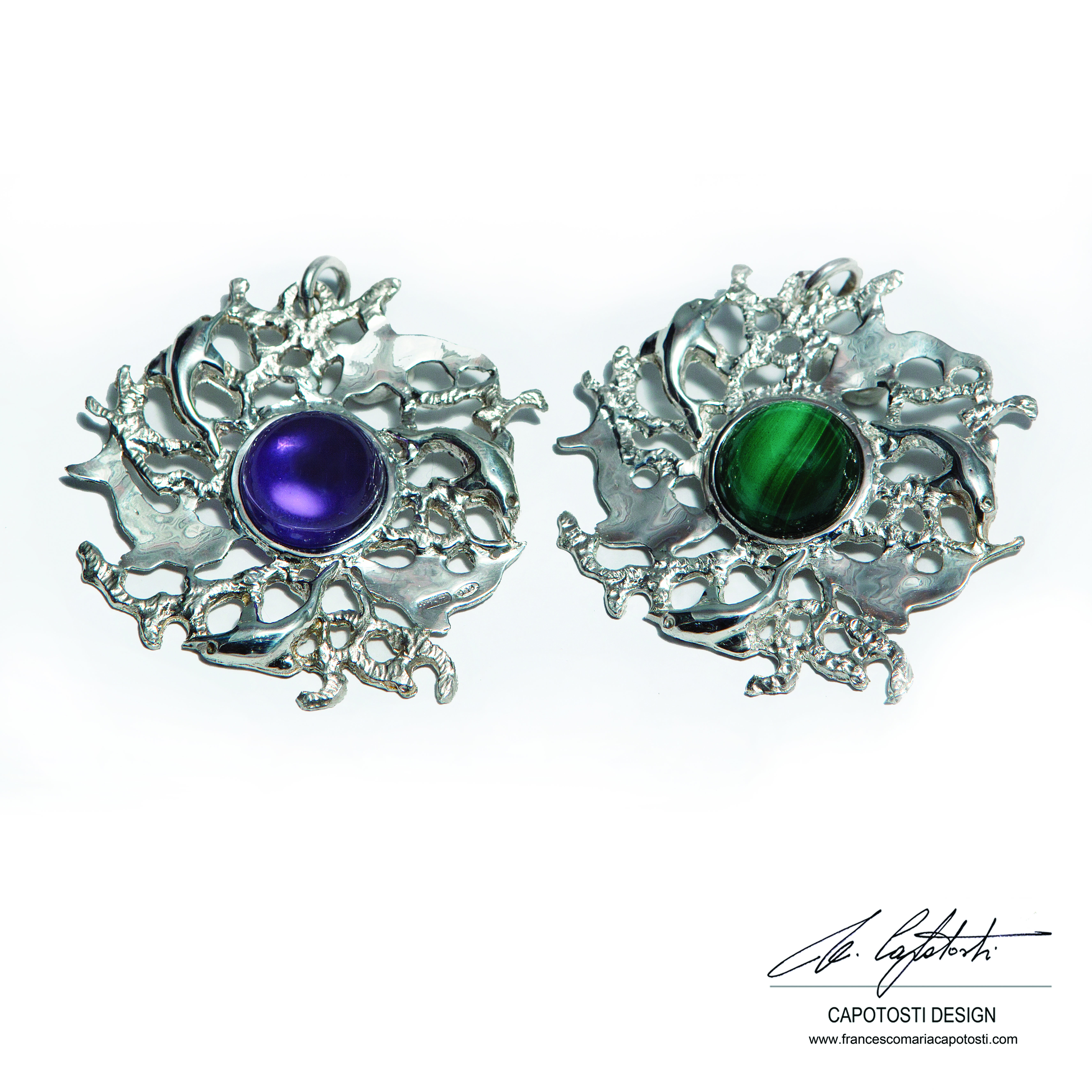 I ciondoli di Francesco Maria Capotosti descrivono un design esclusivo ed unico sia per la scelta che per la qualità dei materiali. Ogni pezzo mette in risalto la plasticità scultorea delle forme, stile che l’artista impone ad ogni sua creazione in maniera riconoscibile.