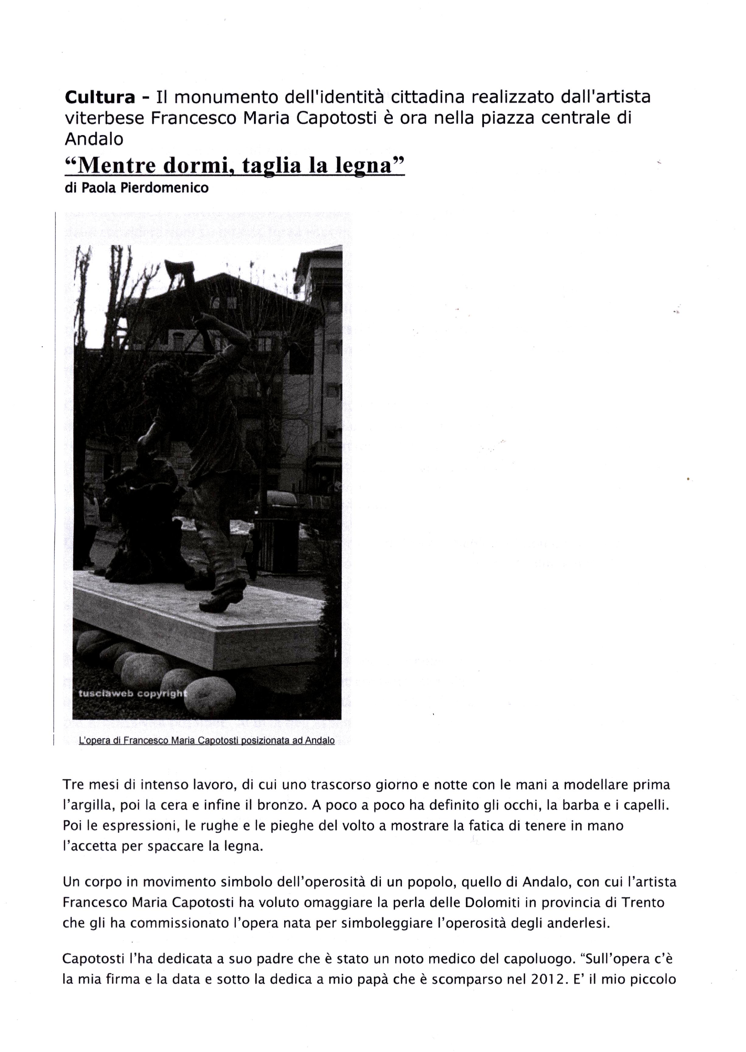 – Corriere di Viterbo, 25 gennaio 2015, “Il Taglialegna: l’opera di Francesco Capotosti” (foto)